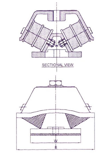 Avmount Cushy Foot Mountings are designed such that when any equipment is placed on them, the rubber-to-metal bonded rectangular inserts are loaded in compression and shear-a combination which lends longevity with the best load/deflection characteristics. These cannot become 'solid' and thus rendered ineffective-a failure from which many so-called anti-vibration devices. Our mountings are so designed that the rubber is protected from oil and physical damage by the use of robust castings. They also provide three planes of stiffness-vertical transverse and longitudinal, thereby allowing them to be employed for optimum performance and use. Full advantage can be taken of this characteristic by disposing the mountings so that greater flexibility is available in the direction in which it is needed.